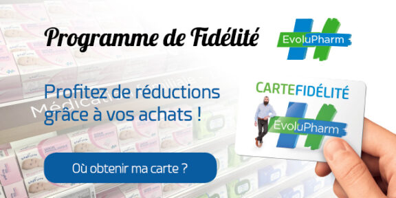 Accumulez un point pour chaque euro dépensé lors de l’achat de produits éligibles. Faites scanner votre carte fidélité par votre pharmacien et suivez votre solde de points en vous inscrivant sur l’Espace Fidélité EvoluPharm.